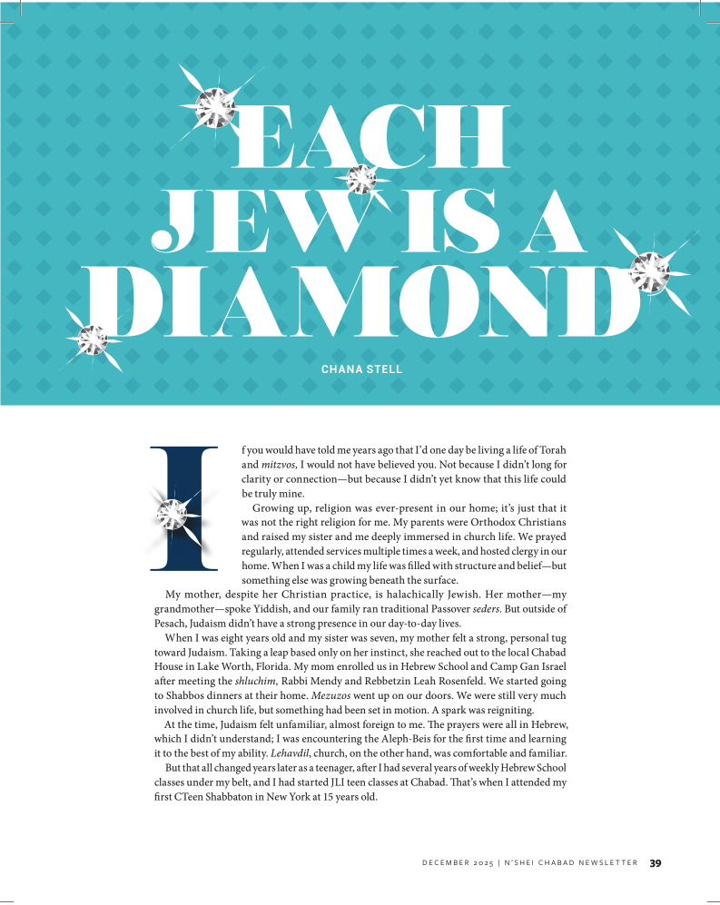 In the Tammuz 5784/2024 issue, Shternie Althaus tells the story of receiving a dollar from the Rebbe and being told,